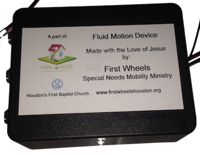 Developed by First Wheels in cooperation with Go Baby Go - Rocky Top, the Fluid Motion Device (aka "FMD") is an interface box that translates simple on/off button presses into smooth acceleration, deceleration and turns. |